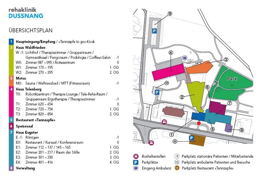 - Bushaltestelle «Dussnang, Kirche/Klinik» in unmittelbarer Nähe